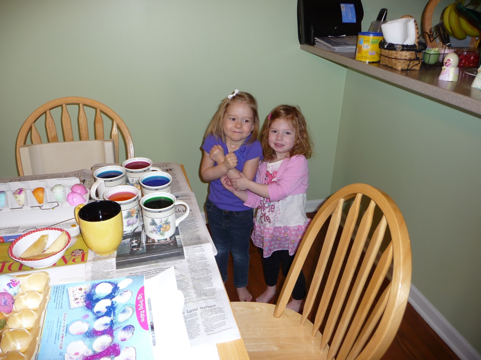 So instead we did Easter activities at home. Lily's friend Livie came over to dye eggs.